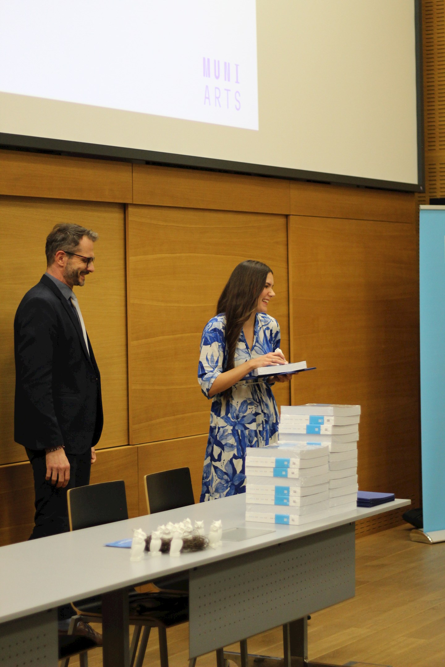 Studentka doktorského programu Lucie Braunerová obdržela v Týdnu humanitních věd cenu děkanky za vynikající diplomovou práci. Tu, jejíž název je Prozodické typy likvid v češtině a jejich fonetické vlastnosti: experimentální studie, vedla docentka Markéta Ziková. Práce prezentuje fonetické vlastnosti češtiny na základě experimentálních dat, která Lucie analyzovala v programu PRAAT. Výsledky práce také prezentovala i na mezinárodní konferenci OLINCO 2025 v Olomouci.